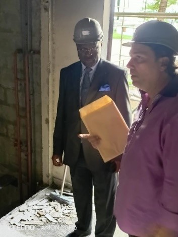 Le Ministre des Affaires Etrangères, Chargé de l’Intégration Sous-régionale et des Gabonais de l’Etranger, Son Excellence Régis ONANGA M. NDIAYE, qui s'est rendu sur le terrain la semaine dernière aller s'enquérir de l'état d'avancement des travaux sur le bâtiment ayant abrité les services de la diplomatie gabonaise, n'a pas manqué de rappeler à l'entrepreneur les instructions du Chef de l'Etat quant à la nécessité de sortir de la situation actuelle. « Il y a eu beaucoup de problèmes avec les différents ministres qui se sont succédé et qui voulaient ajouter une touche supplémentaire au bâtiment, alors que ce n'était pas dans le programme initial. Ce qui n'a fait que retarder le chantier », a justifié Fabien TRIPODI, le Chef du chantier, assurant qu'avec les promesses faites par les nouvelles autorités, le chantier de réhabilitation devrait s’accélérer : «si toutes les conditions sont réunies, dans trois mois, le bâtiment annexe sera terminé et dans 12 mois, le bâtiment principal ». Après sa visite du chantier, le membre du gouvernement s'est dit confiant.